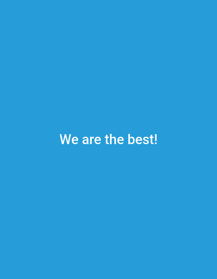The image displays a solid, uniform blue background. Centered horizontally and vertically on this field is the white text, "We are the best!", rendered in a sans-serif typeface. No individuals, identifiable subjects, distinct objects, specific actions, interactions, or environmental features are present in the image that would allow for the determination of a precise location within the city of Obruchishte, Bulgaria, or any other geographic area.