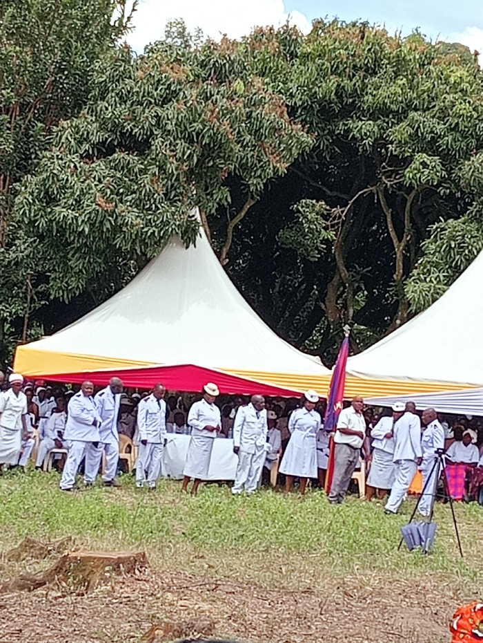 The image depicts an outdoor gathering in Lumakanda ward, Kenya