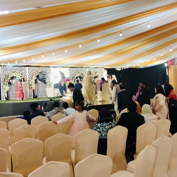 - "This image depicts a formal indoor event, likely a wedding reception or ceremony, located in Dhaka, Bangladesh" by FM-rkNqI2, licensed under CC BY 4.0