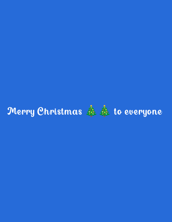 Against a solid blue background, a "Merry Christmas to everyone" message is centered