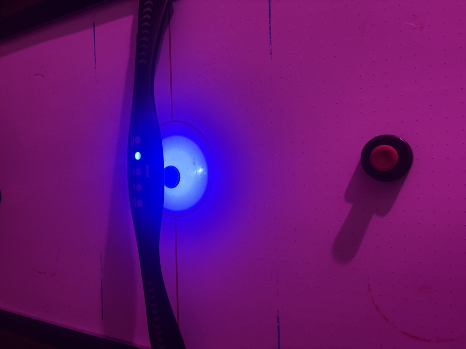 - "The image displays the playing surface of an air hockey table under strong artificial lighting" by FM-2g8Zp2, licensed under CC BY 4.0