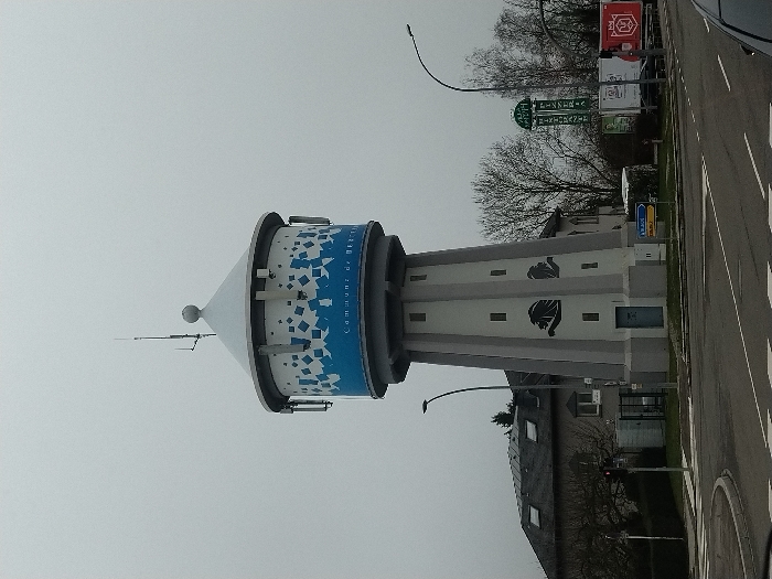 - "A large, multi-faceted water tower dominates the center of the image, located at an intersection in Bertrange, Luxembourg, as indicated by "COMMUNE DE BERTRANGE" written on its upper blue band" by FM-M4lpO2, licensed under CC BY 4.0