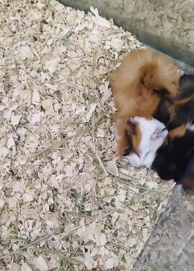 - "Three guinea pigs are nestled together in a corner of their enclosure" by FM-ZqBmD2, licensed under CC BY 4.0