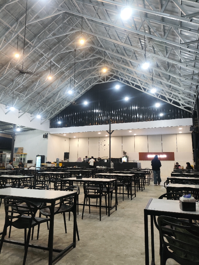 This image captures the interior of a spacious, brightly lit dining establishment in Lhokseumawe, Indonesia