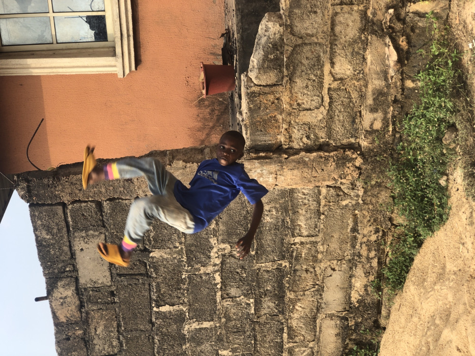 - "A young male individual, of dark complexion, is captured mid-air in what appears to be a backflip or somersault, in an outdoor setting within Akpaka Forest Reserve, Nigeria" by FM-vpNng1, licensed under CC BY 4.0