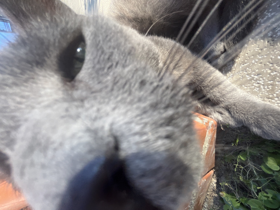 - "An extreme close-up, low-angle photographic evidence captures a short-haired gray domestic cat in an outdoor environment in Budva, Montenegro" by FM-rOKEu2, licensed under CC BY 4.0