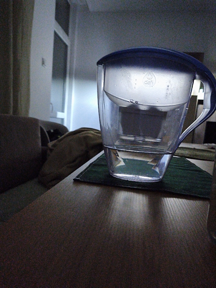 - "The image depicts an indoor scene in Kazanlak, Bulgaria, focusing on a clear plastic "Dafi" brand water filter pitcher with a blue lid and handle, positioned centrally" by FM-lxdcD3, licensed under CC BY 4.0