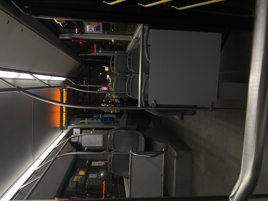 - "The image displays the interior of a public transit bus at night, viewed from the rear towards the front" by FM-5fMa02, licensed under CC BY 4.0