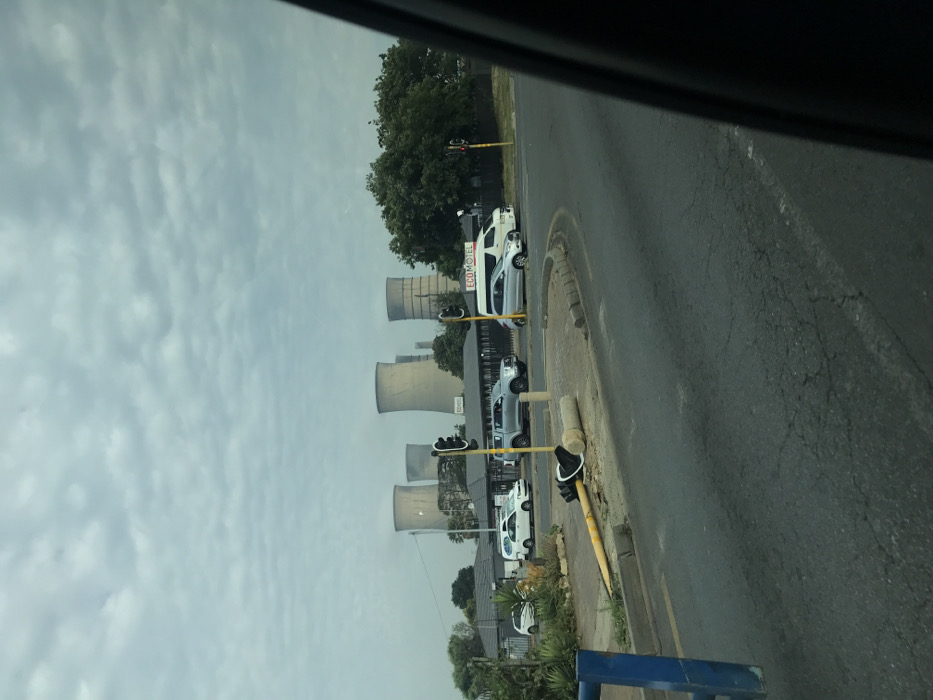 The image depicts an urban intersection in Kempton Park, South Africa, under an overcast sky