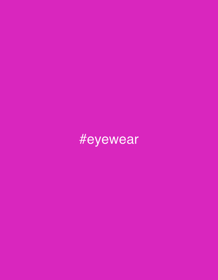 The image displays a solid magenta-colored field. Centered horizontally and vertically on this background is the white text "#eyewear". No individuals, additional subjects, or objects are present. No actions or interactions are depicted. The environment is abstract, consisting solely of a uniform color field and text. There is no visual information within the image to determine a specific geographical location, including any location within the city of Trud, Bulgaria.
