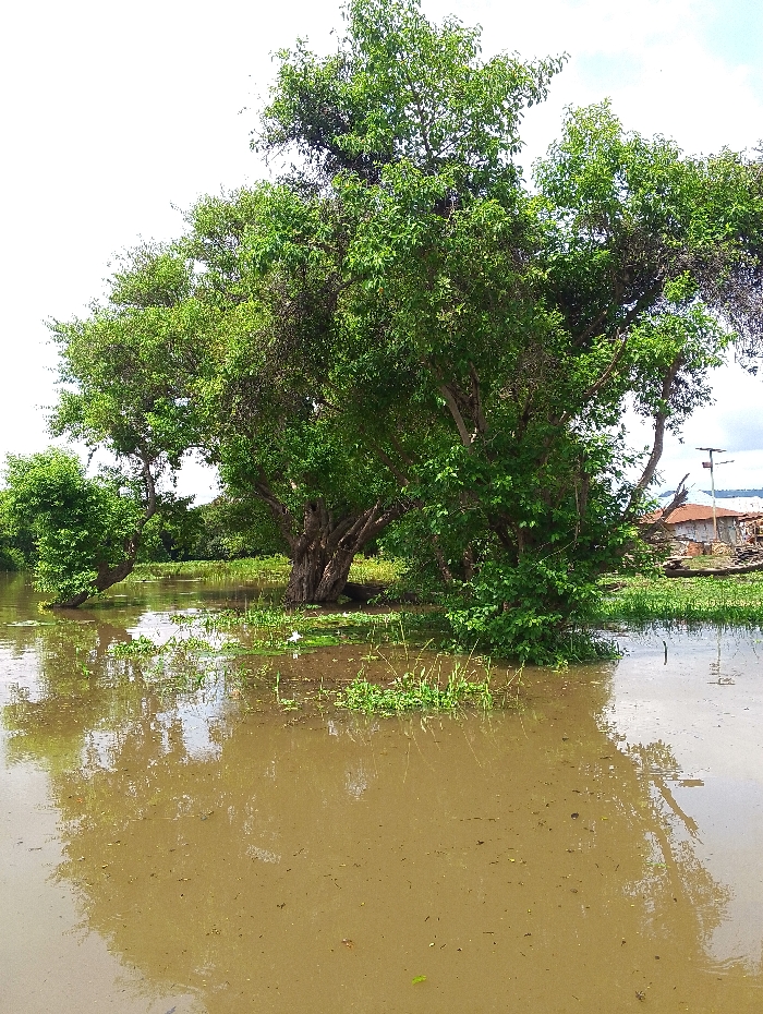 - "The scene in Lokoja, Nigeria, presents a large body of murky, olive-brown water occupying the foreground and midground, reflecting green foliage and a bright sky" by FM-BB6Op2, licensed under CC BY 4.0