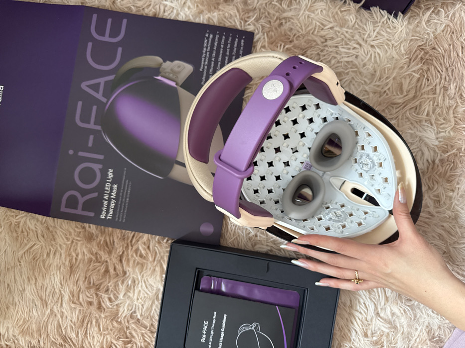 - "The scene, set in Paris, France, displays a Rai-FACE Revival AI LED Light Therapy Mask and its associated packaging components on a textured, light brown fluffy carpet" by FM-IXb3V2, licensed under CC BY 4.0