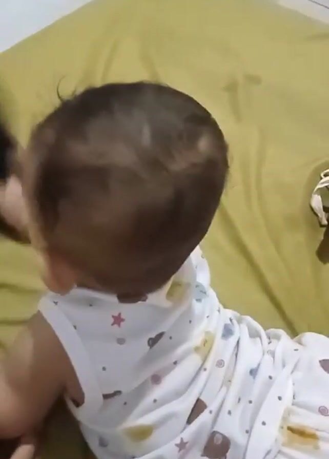 - "A baby in a white onesie with cartoon prints is lying on a green bed" by FM-djNUF3, licensed under CC BY 4.0