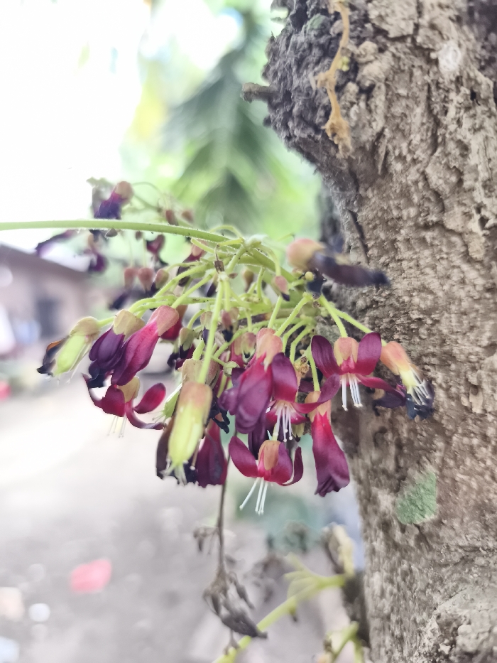 - "A close-up photograph, taken in Teumpokteungku, Indonesia, displays a cluster of dark red to purple Averrhoa bilimbi flowers, also known as belimbing wuluh, blooming directly from the rough, grayish-brown bark of a tree trunk occupying the right side of the frame" by FM-RPcK62, licensed under CC BY 4.0