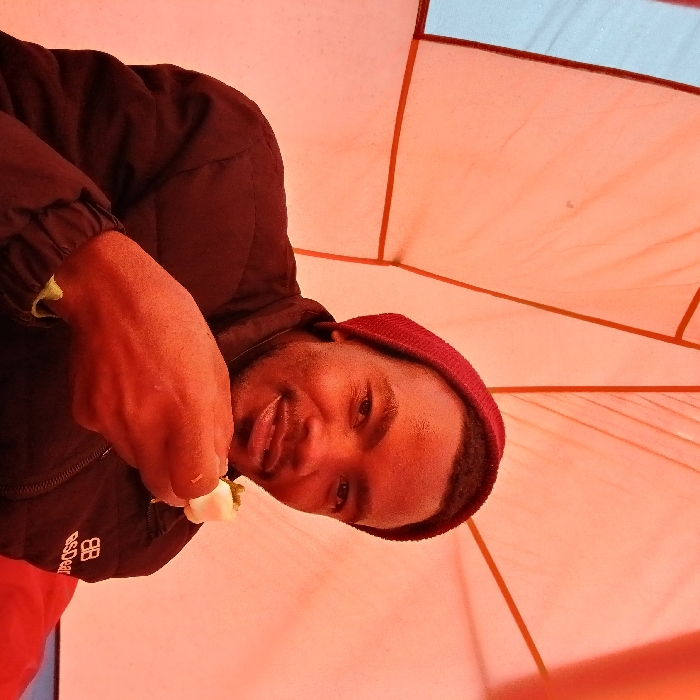 - "Gilman's Point, Tanzania: A single adult male is depicted in a medium shot, centered within an orange-toned interior, likely a tent or shelter" by FM-tjCYg2, licensed under CC BY 4.0