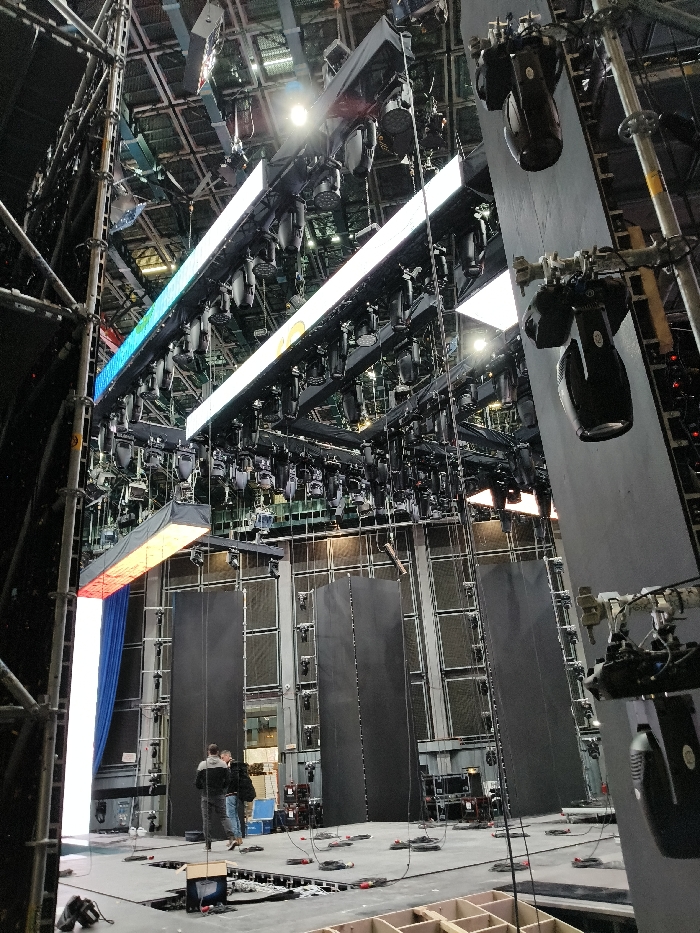 - "The scene depicts the interior of a large, high-ceilinged venue or production studio in Cukarica Urban Municipality, Serbia, during a technical setup phase" by FM-JJ59A2, licensed under CC BY 4.0