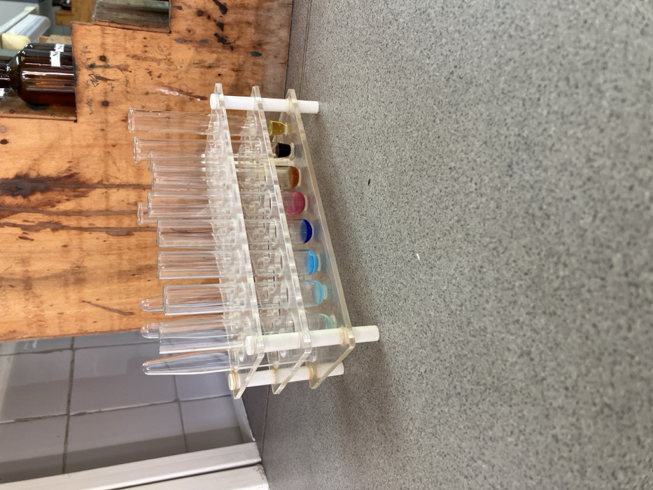 - "The image displays a two-tiered transparent acrylic test tube rack centrally positioned on a speckled grey countertop" by FM-JVVBB3, licensed under CC BY 4.0