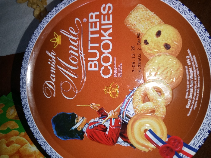 - "round tin of Danish Monde Butter Cookies" by FM-2nZTV2, licensed under CC BY 4.0