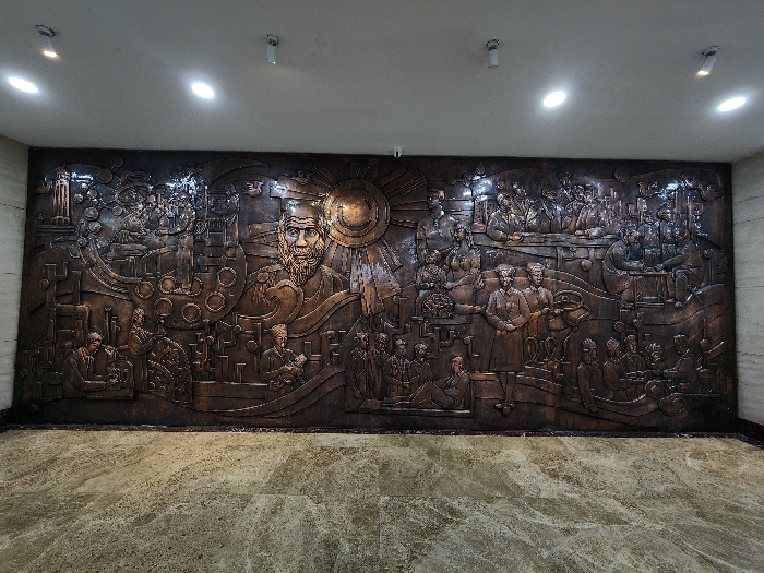 - "A large, rectangular, high-relief sculpture crafted from dark, oxidized bronze or copper-toned metal is prominently displayed on a light-colored wall in a building in Yuzhong District, China" by FM-intJc2, licensed under CC BY 4.0
