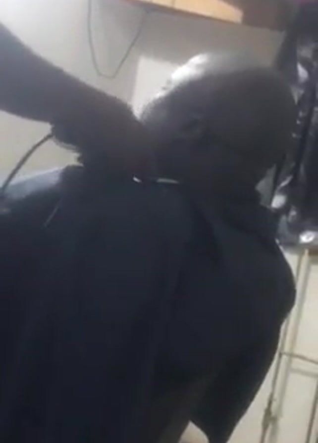 person getting a haircut on the back of their neck
