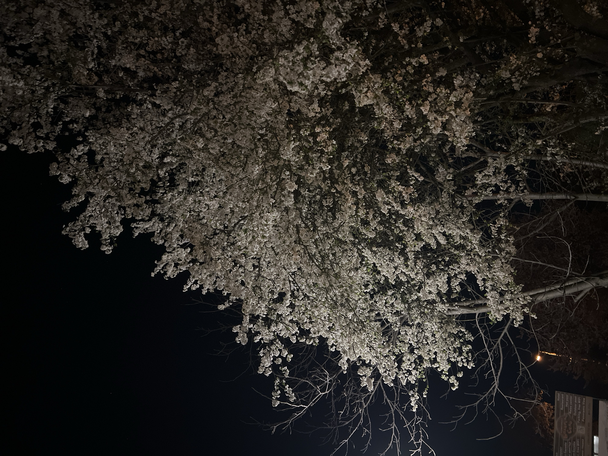 - "flowering tree at night, likely in Arbanassi, Bulgaria, based on the text on a sign visible in the lower right corner" by FM-a3uzD2, licensed under CC BY 4.0