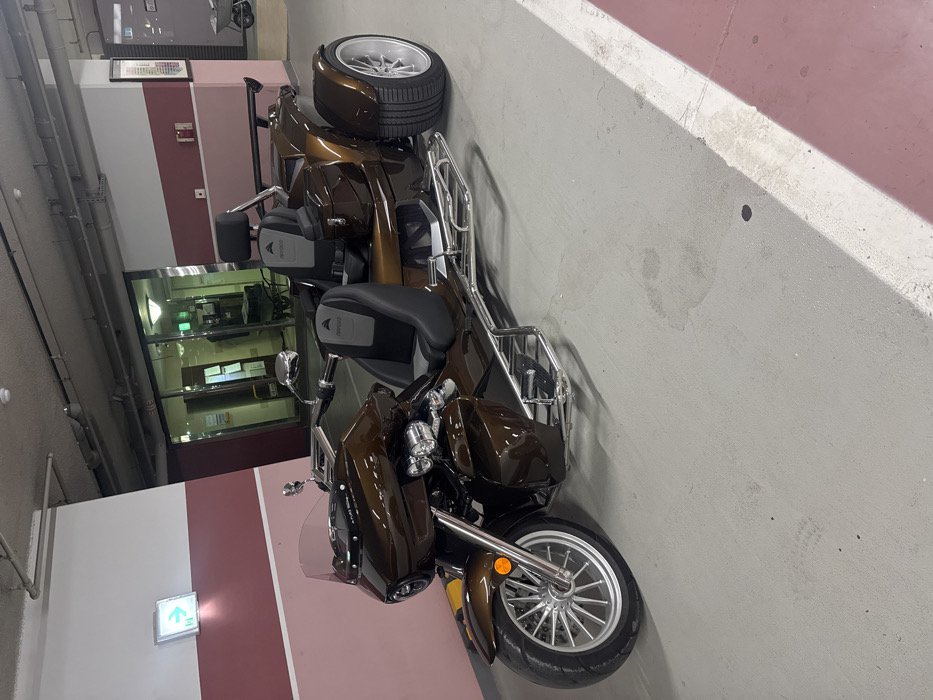 - "A brown, three-wheeled motorcycle is parked indoors" by FM-UWeH83, licensed under CC BY 4.0