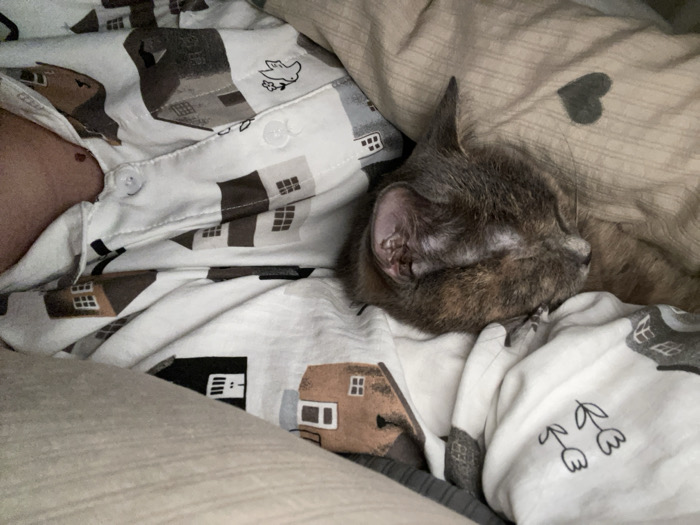 - "In Jinshui District, China, an indoor scene depicts a tortoiseshell-patterned cat sleeping soundly" by FM-oJoph1, licensed under CC BY 4.0
