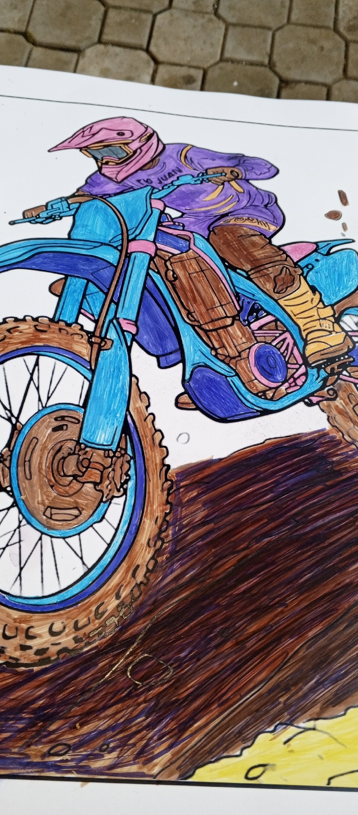 - "A colored drawing depicts a person riding a blue dirt bike" by FM-9pOP92, licensed under CC BY 4.0