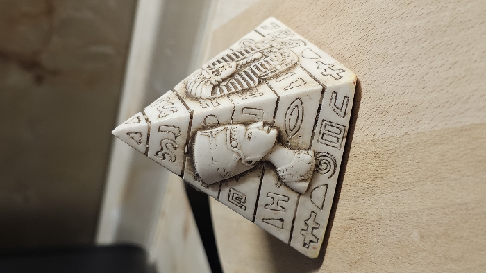 - "An off-white, pyramid-shaped decorative object, approximately 8-10 cm in height, rests on a light-colored wooden surface" by FM-Kxkni1, licensed under CC BY 4.0