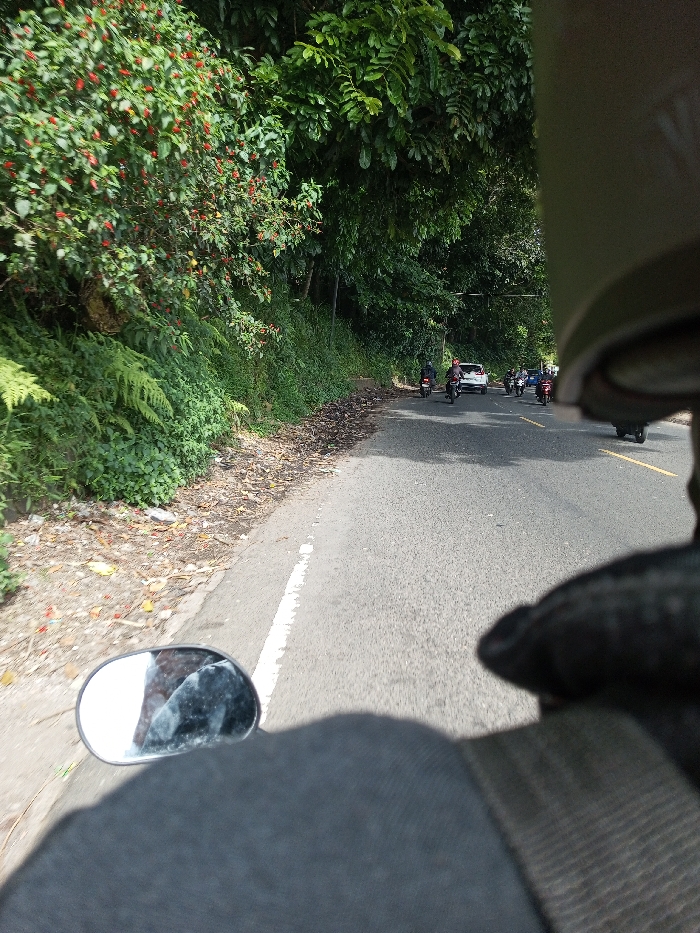 - "The image captures a first-person view from a motorcycle traveling on a paved road in Pacet, Indonesia, under bright daylight" by FM-P1BLe2, licensed under CC BY 4.0