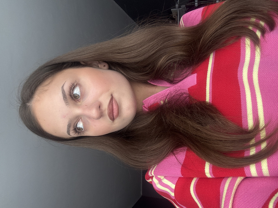 A young adult female, appearing to be in her late teens or early twenties, is featured in a close-up portrait
