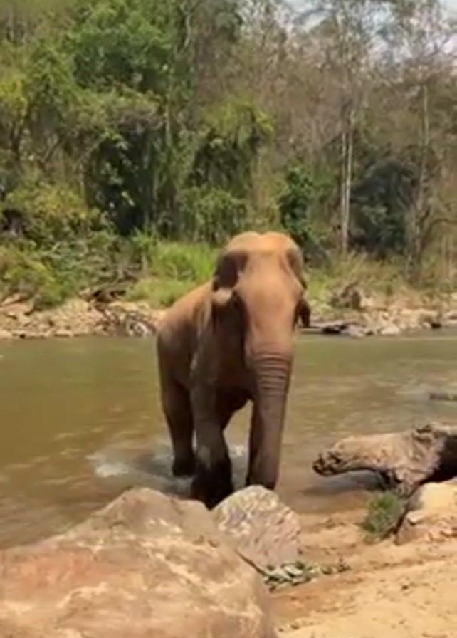 - "An elephant wades into a river with lush green trees and vegetation visible on the far bank" by FM-E1hwL2, licensed under CC BY 4.0