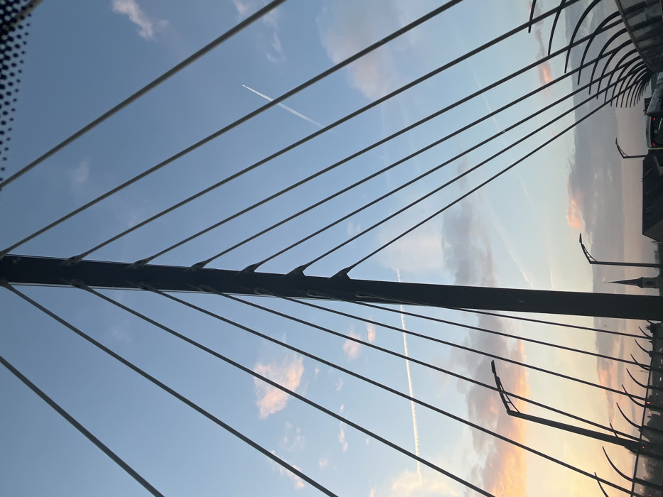 - "An image, captured from within a vehicle looking upwards through its windshield, depicts the structural elements of a cable-stayed bridge in Bettembourg, Luxembourg, at dusk or dawn" by FM-CPrh43, licensed under CC BY 4.0