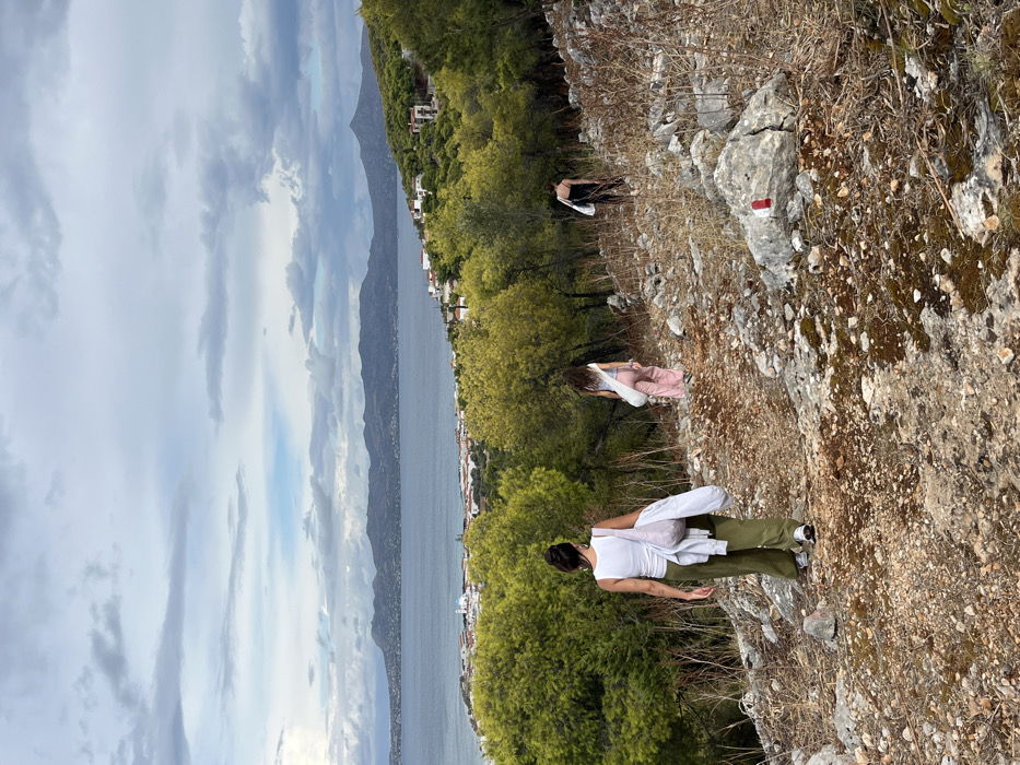 - "Three individuals, appearing female, are depicted from behind, walking down a rugged, unpaved path on a hillside in Megalochori, Greece" by FM-CRvhO2, licensed under CC BY 4.0