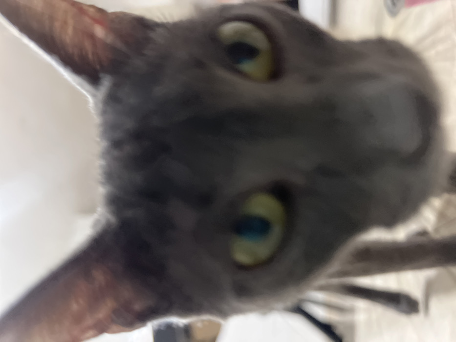 - "A short-haired domestic cat with dark grey fur is depicted in a close-up, head-on portrait" by FM-C5wFF2, licensed under CC BY 4.0