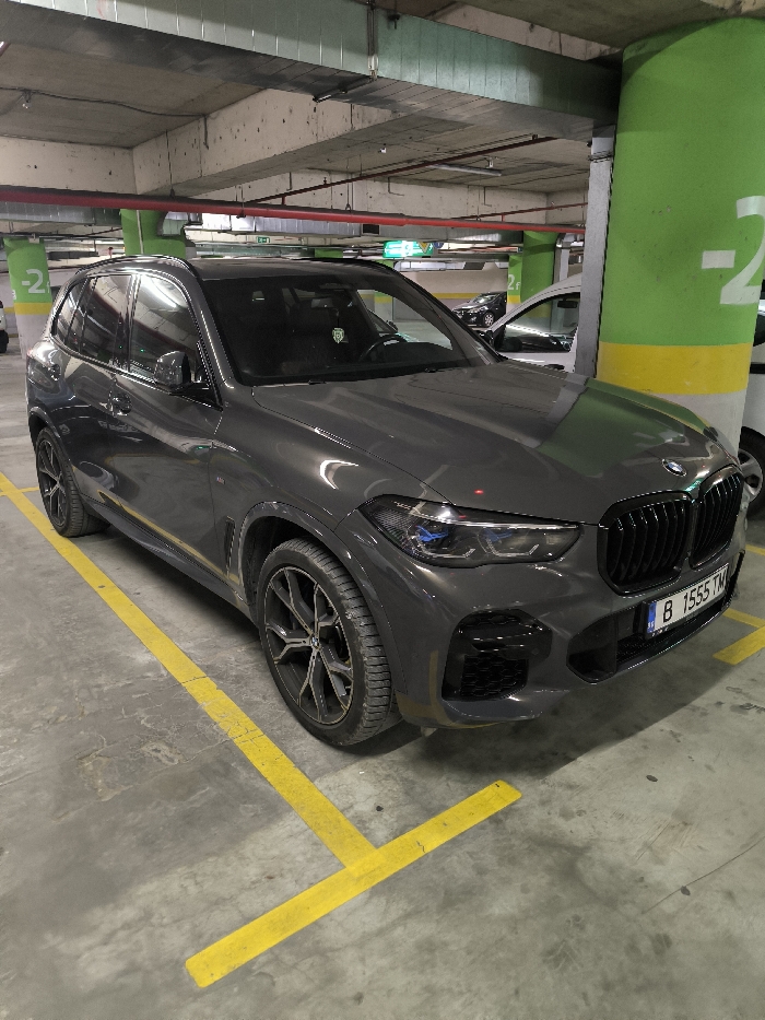 - "A dark gray BMW X5 sports activity vehicle is centrally parked within a concrete underground parking facility" by FM-QsyOh2, licensed under CC BY 4.0
