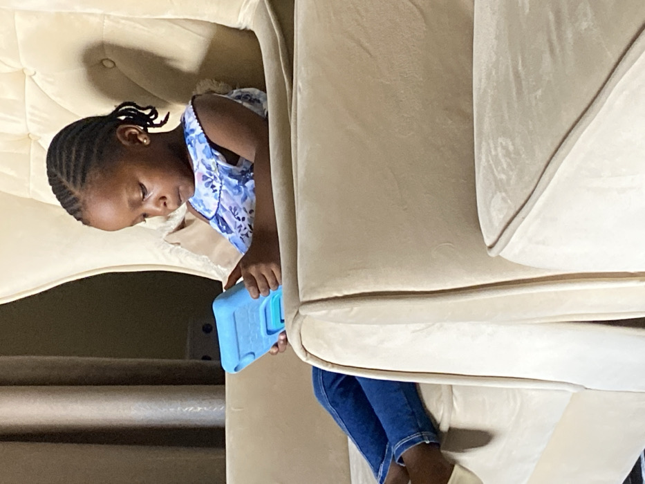 - "An indoor scene in Abuja, Nigeria, depicts a young child seated in a light beige, tufted armchair" by FM-eUvcj1, licensed under CC BY 4.0