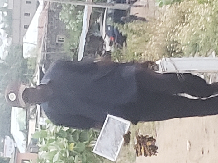 - "A male individual, wearing a dark short-sleeved shirt, dark trousers, and a beige baseball cap with a circular emblem, walks along an unpaved dirt path in a residential area of Lokoja, Nigeria" by FM-J1d7X2, licensed under CC BY 4.0
