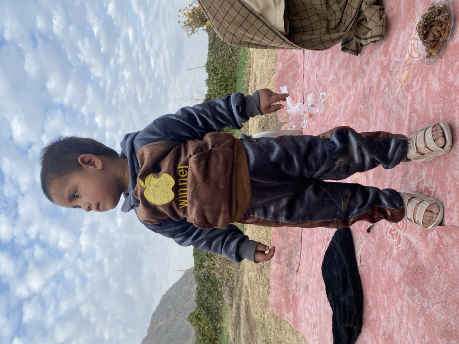 - "A young child, approximately two to four years old, stands upright on a patterned red mat in an outdoor setting in Kandahar, Afghanistan" by FM-B5wmg2, licensed under CC BY 4.0