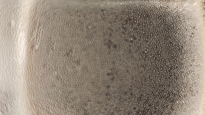 close-up of condensation forming on a surface, likely glass or plastic