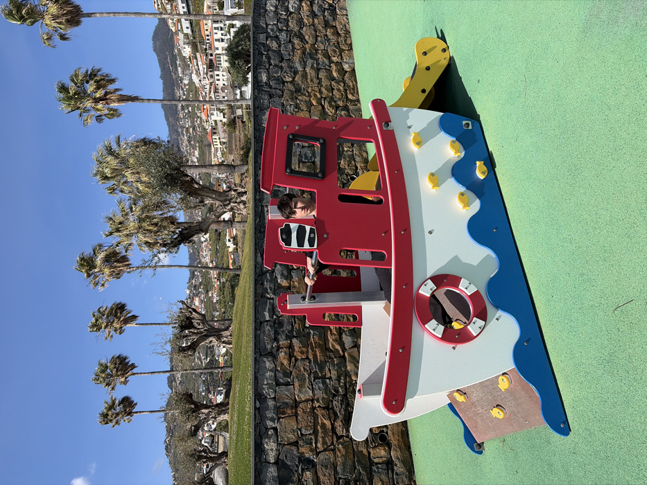 The image depicts an outdoor playground scene in Câmara de Lobos, Portugal