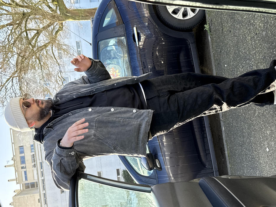 A male subject is depicted standing outdoors on a sunny day in Hérouville-Saint-Clair, France