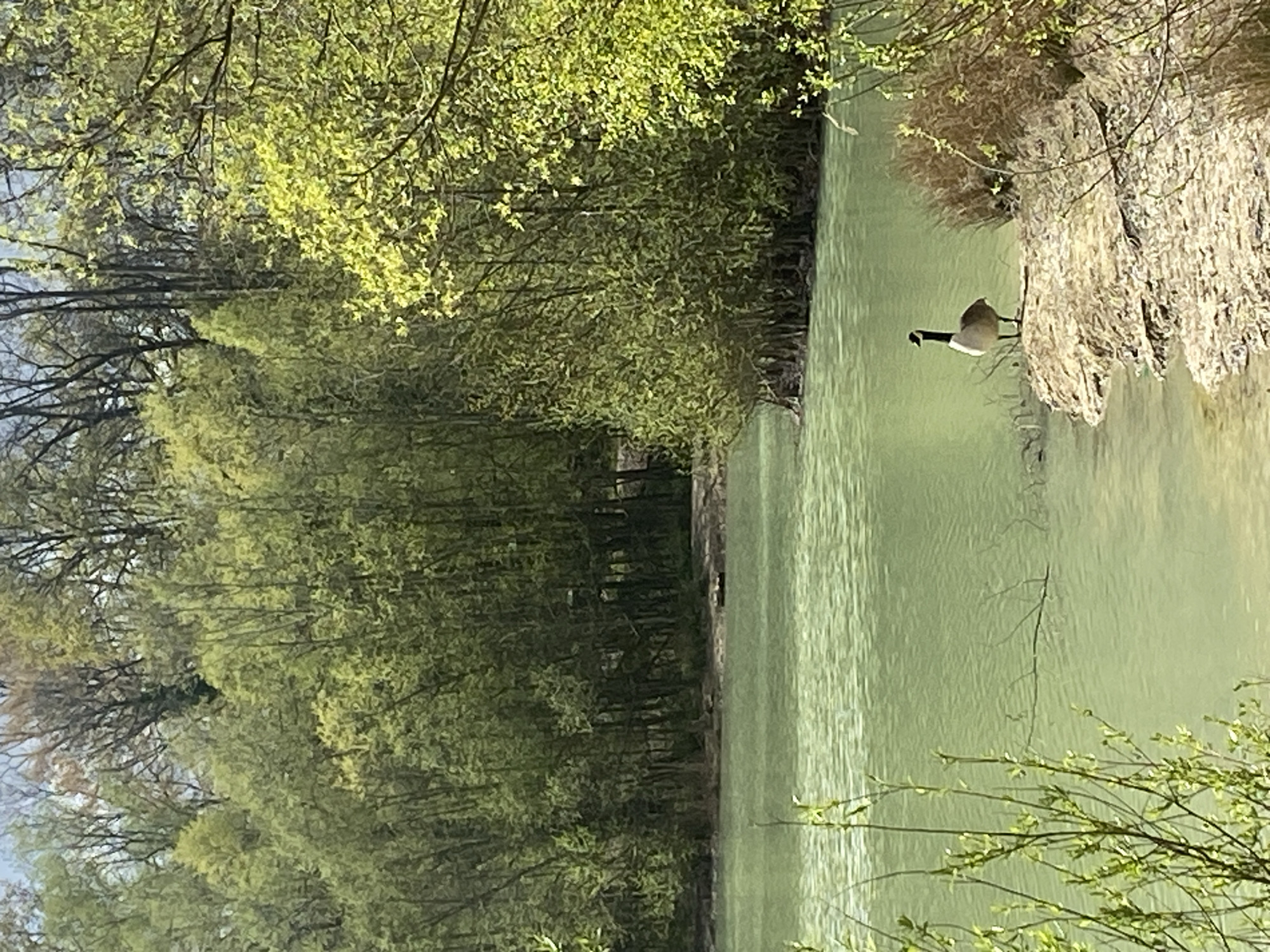 - "A goose stands on the bank of a body of water surrounded by lush green trees" by FM-UlzuP2, licensed under CC BY 4.0