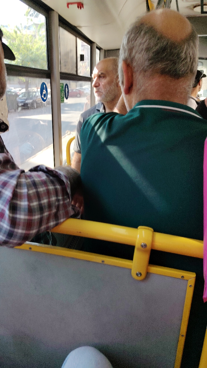 - "The scene is set inside a public transport vehicle, likely a bus, located in Sarouja Municipality, Syria, during daylight hours" by FM-YWUCQ2, licensed under CC BY 4.0