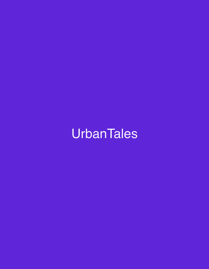 The image displays a digital graphic consisting of a uniform royal purple background. Centered both horizontally and vertically on this background is the white text, "UrbanTales," rendered in a sans-serif typeface. No discernible real-world objects, people, subjects, actions, or interactions are depicted. The environment is an abstract color field. There is no visual information present that indicates a specific location within Tel-Aviv, Israel, or any other physical geographic space.