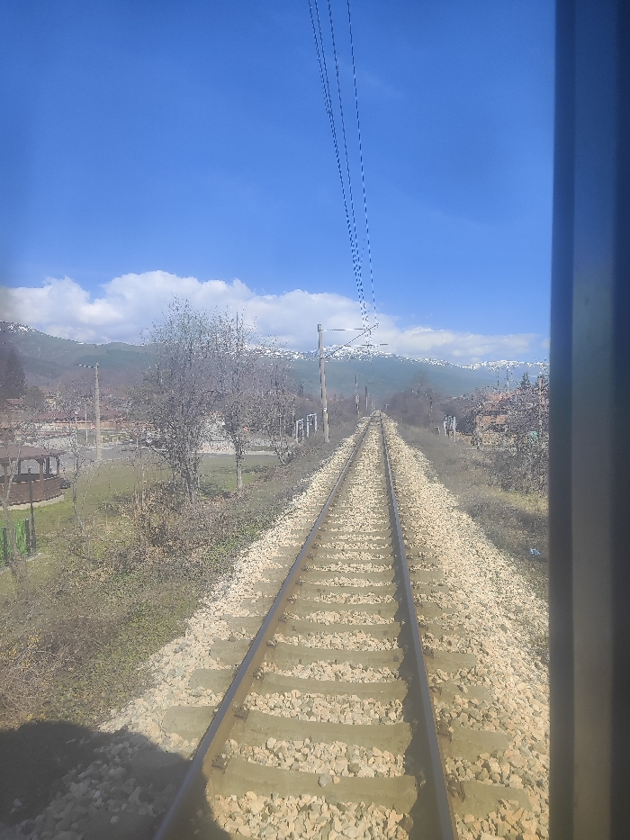 - "The image displays a straight section of a single railway track extending centrally into the distance, photographed from a forward-facing perspective, likely from a train or trolley" by FM-AR3Uc2, licensed under CC BY 4.0