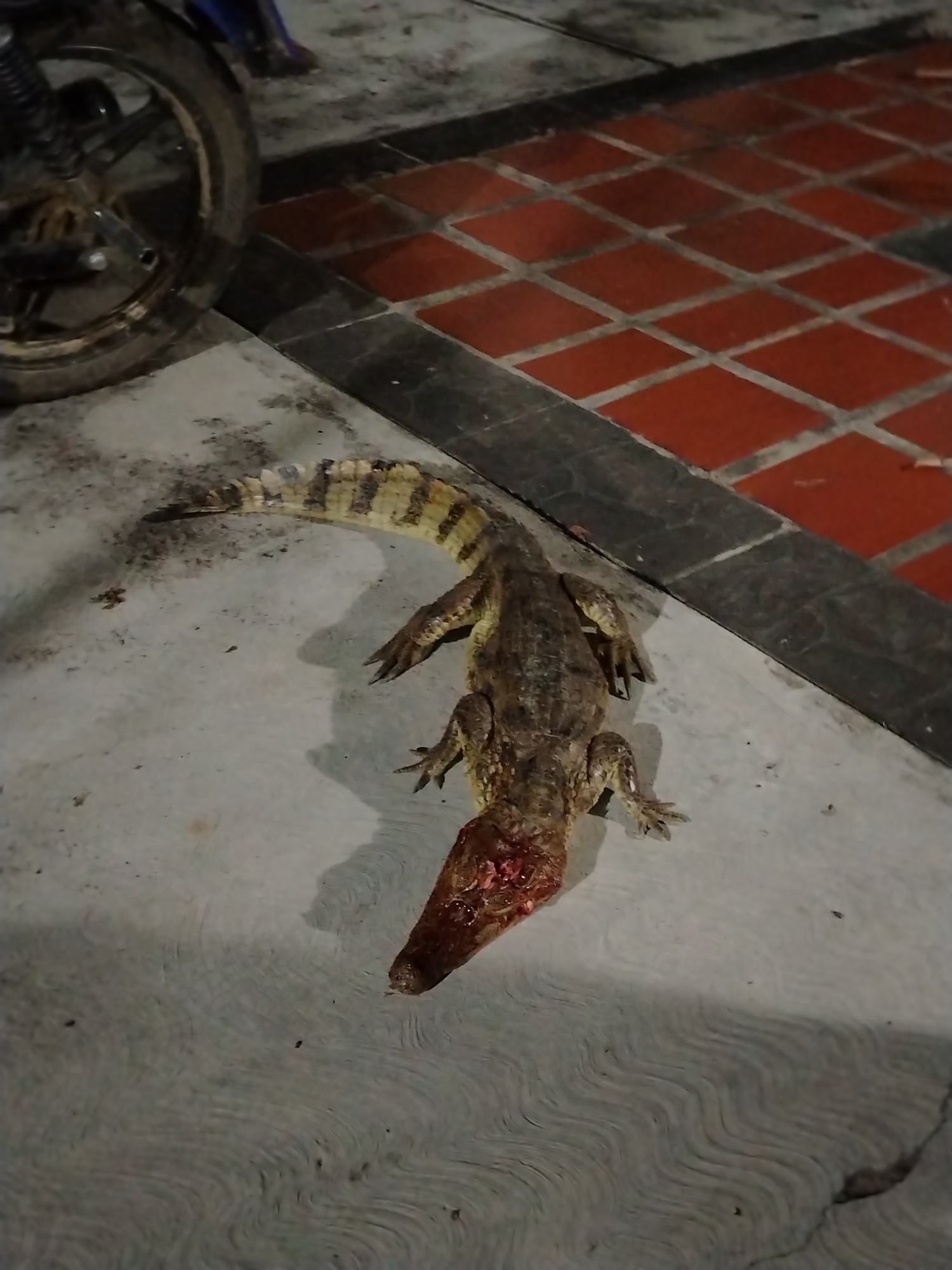 - "A dead juvenile caiman lies on a gray concrete surface" by FM-rVyQI3, licensed under CC BY 4.0