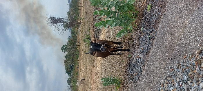 - "A brown cow with a white patch on its head stands in a field near a narrow paved road" by FM-MyThD2, licensed under CC BY 4.0