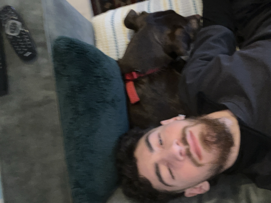- "A male individual and a dog are resting on an upholstered surface within an indoor setting in Strasbourg, France" by FM-f2iYg1, licensed under CC BY 4.0