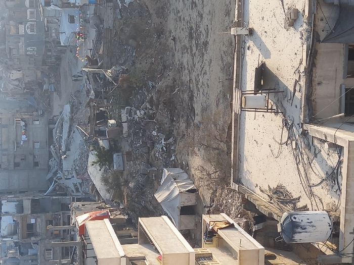 - "The image depicts an urban landscape in Khan Yunis, Palestinian Territory, characterized by extensive structural damage and debris under a hazy sky" by FM-qsupk2, licensed under CC BY 4.0